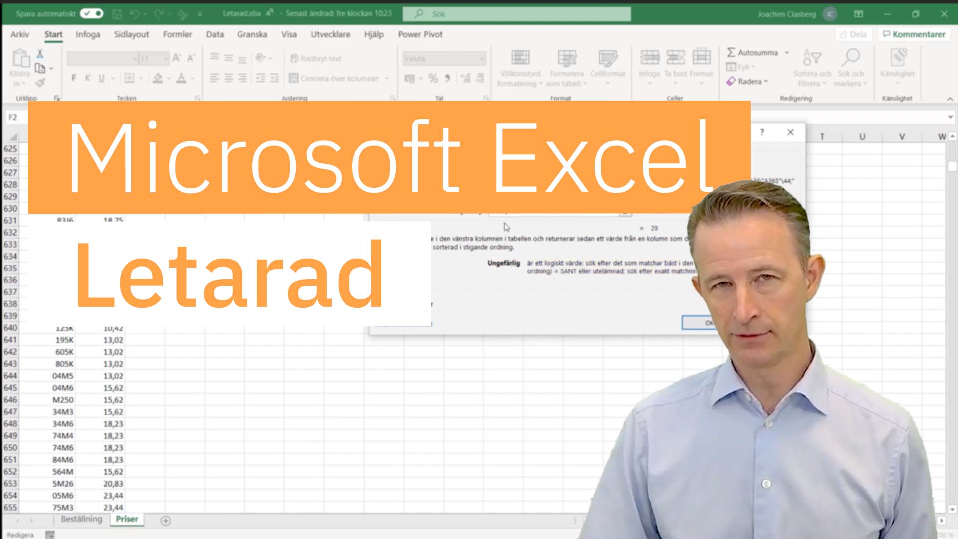Ämnesexperten Joachim Clasberg visar hur du använder dig av funktionen Letarad i Microsoft Excel.
