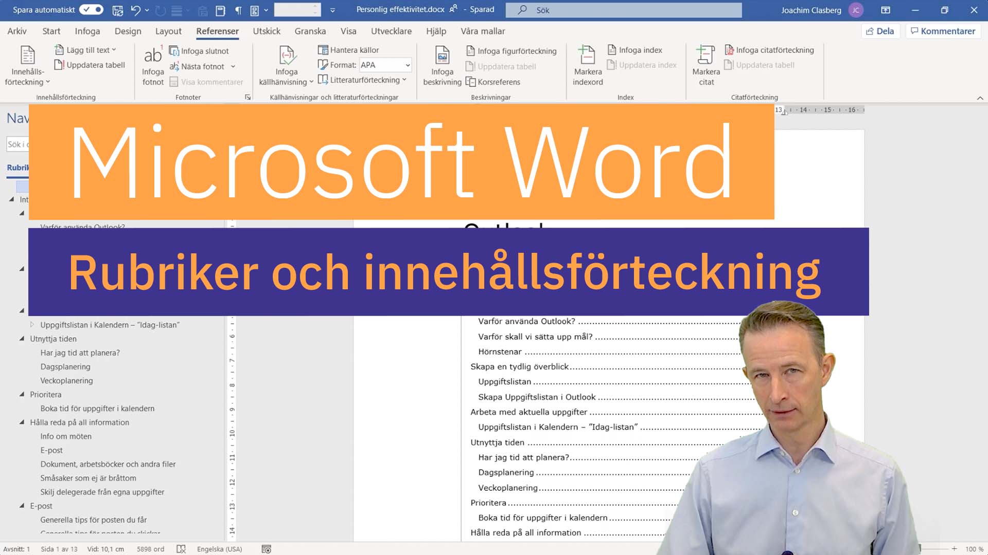 Vår ämnesexpert Joachim Clasberg visar hur du skapar rubriker och innehållsförteckning i Microsoft Word.